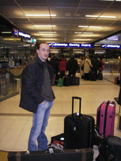 eipä tää turun lentokenttä näytä kovin hääppöseltä ja heti tulee ongelmia tätin kaa kun meil on liian pitkää kamista mukana ja joku laukku painaa liikaa. no, siitä selvitään räjäyttämällä laukku ja latomalla osa kamiksista toisiin laukkuihin, jess !!