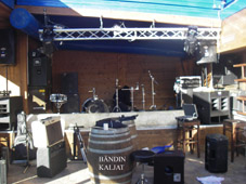 Perille päästyämme purettiiin kamat autosta ja hetken ihmeteltyämme menimme baariin tutustumaan lavaan sekä henkilökuntaan. Kamat lavalle ja tsekki, vähän kahvia, suihkuun ja eikun keikalle vaan.