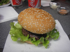Sveitsiläinen hamburger. Olihan ainakin lihaa mukana.
