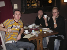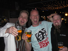 Tuli käytyä taksilla Tukholmassa. Kävelyllä Gamla Stanissa tuli yllättäen nälkä ja kovan arpomisen jälkeen löysimme itsemme viihtyisästä ravintolasta tilaamasta ruokaa ja kaljaa. Viihtyisän ravintolan suojissa vietimme vajaan parituntisen. Tilattu ruoka oli kyllä erittäin hyvää. Hinnasta viis. Jos tuollaisen kymmenpäiväisen rupeaman jälkeen palkitsemme itsemme... Hei, olkoon niin että se oli bändimme juhlalounas. Juhlimme 200. keikkaamme bileissä jotka jäivät viime keskiviikkona pitämättä.