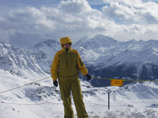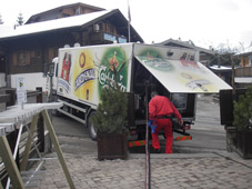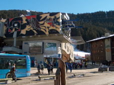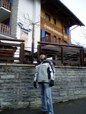 Paikalla pääsimme rauhallisen taksin kyydissä (NOT!). Vastaanotto oli ystävällistä: ensimmäiseksi ilmoittivat, että olemme saapuneet gay-baariin, mikä tietysti sopi meille kuin nenä peppuun. Kumma paikka tämä Verbier; hiihtohissit, baaritiskit ja liikennemerkit täynnä gay-tarroja. Kyseessä on ilmeisesti jokin sisäpiiri vitsi, mikä ei ole vielä tähän mennessä avautunut.