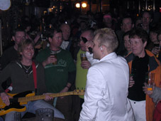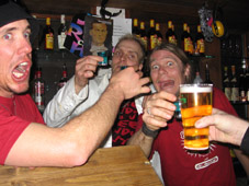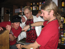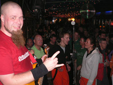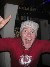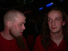 …dr.pojat eivät liuenneet lavalta pois ekassa setissä ja muutoinkin liikehdintä oli tarkoin harkittua ja pälyily kuului asiaan …. , yleisö ihan ihmeissään mutta kyllä pientä liikehdintää ja pöytätansseja oli silti havaittavissa !! tokassa setissä mr.baarimikko ’’lilla-johan’’ toi väkisin niitä shotteja lavalle ja kuulutteli meidän olevan viimeistä päivää tällä rundilla täällä soittamassa ja sanoi meidän tulevan taas ensi vuonna, no, …..höpinöitä sanon, meiltä ei oo viel kukaan kysynyt mielipidettä !!