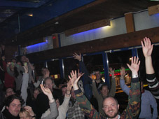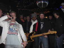 meno oli aluksi tahmeeta ja yleisö vaan tuijotti meitä melkein koko ekan setin mut sitte muuttu ääni kellossa. hokasin yleisössä jätkälauman joka heilutti leukojaan meidän biisien tahdissa ja hilasin itteni tarpeeks lähelle annoin mikrofooonin heidän käyttöönsä ni siitä pikkuhiljaa alko muittenkin hymyt irrota ja lopun tiedättekin... älytöntä menoa loppukeikka...