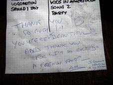 tarkoituksena on muuttaa setin kulkua jonkin verran viimeisenä iltana ja katsoa miten yleisö reagoi !! tähän asti olemme ajaneet klo 18 à> alkaen satakymmenen lasissa joka ikinen ilta ja meininki on ollut sen mukaista myös yleisössä , kaikki yleisön villitsemismuodot ovat olleet sallittuja mutta nyt katsotaan saavatko he omin avuin meiningin nousemaan kattoon meidän vaan soitellessa ??