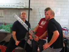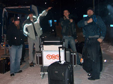 Alkujärkytyksen (!) jälkeen aloimme säätämään kamoja paikoillensa. Aikansa se otti mutta siitäkin selvittiin. Aikamoisessa koomassa mennään, äkkiä kamat huoneisiin. Suihku ja palaveri Laurentin (myöh. Late!) kanssa. Keikka alkaa ja täytyy sanoa että olemme aivan pihalla. Siis systeemi on niin erilainen kuin kotona. No, onhan meillä aikaa ja monta päivää aikaa opetella. Keikan jälkeen olut nousee väsyneille lujaa päähän, mutta järkimiehinä osaamme lopettaa ajoissa ;)