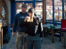 Wee ja Krisse kaffetauolla Apres Ski baarissa.