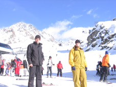 kyllä, tämäkin aamu alkoi samalla tavalla kuin useimmat. eli aamupala, joka oli taas ihan kiva. tänään on viimeinen rinnepäivä minulle ja juinille. laskettelemme kuin vanhat tekijät ja haukumme muita turisteja mäessä. viimeisestä laskusta meinasi tulla henkilökohtaisesti minun viimeinen. kaaduin ja löin pään rinteeseen niin lujaa et näin tähtiä vähän aikaa. tokenin siihen et yksi hemmo toi minun laskettelulasit minulle. ne olivat rikkoontuneet. sen jälkeen otin vähän happihyppelyä ja jatkoin matkaa. päätä kivisti aika lailla koko illan. se aiheutti myös aika epämiellyttävän keikan.